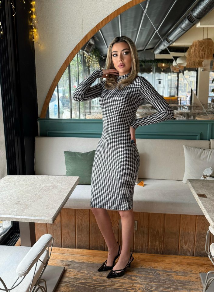 Kadın Kazayağı Desen Süet Kumaş Fırsat ürün Midi Boy Elbise