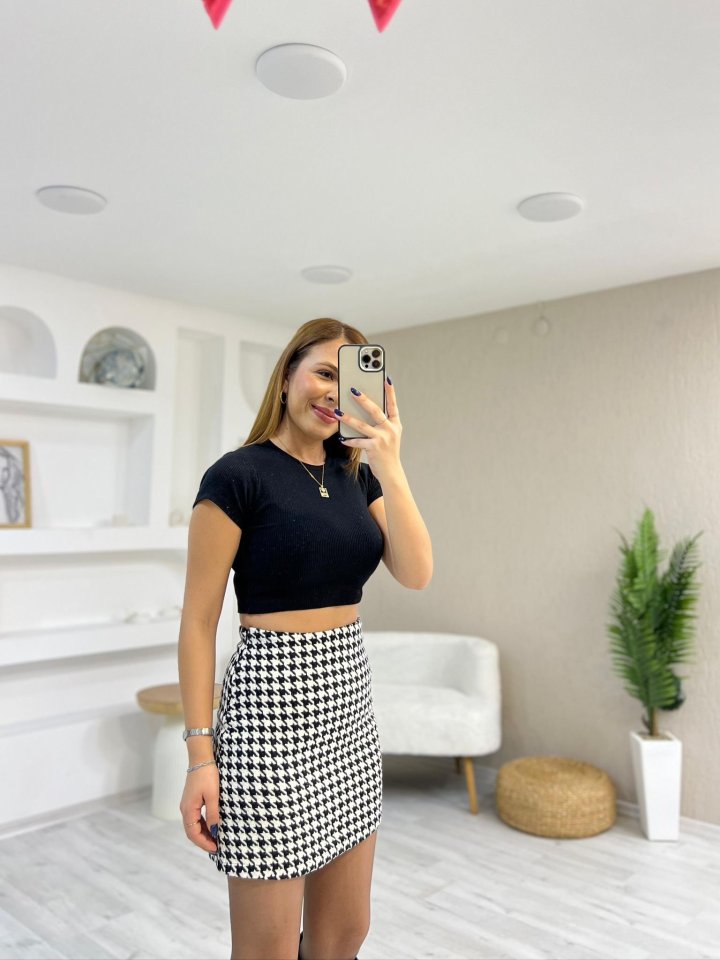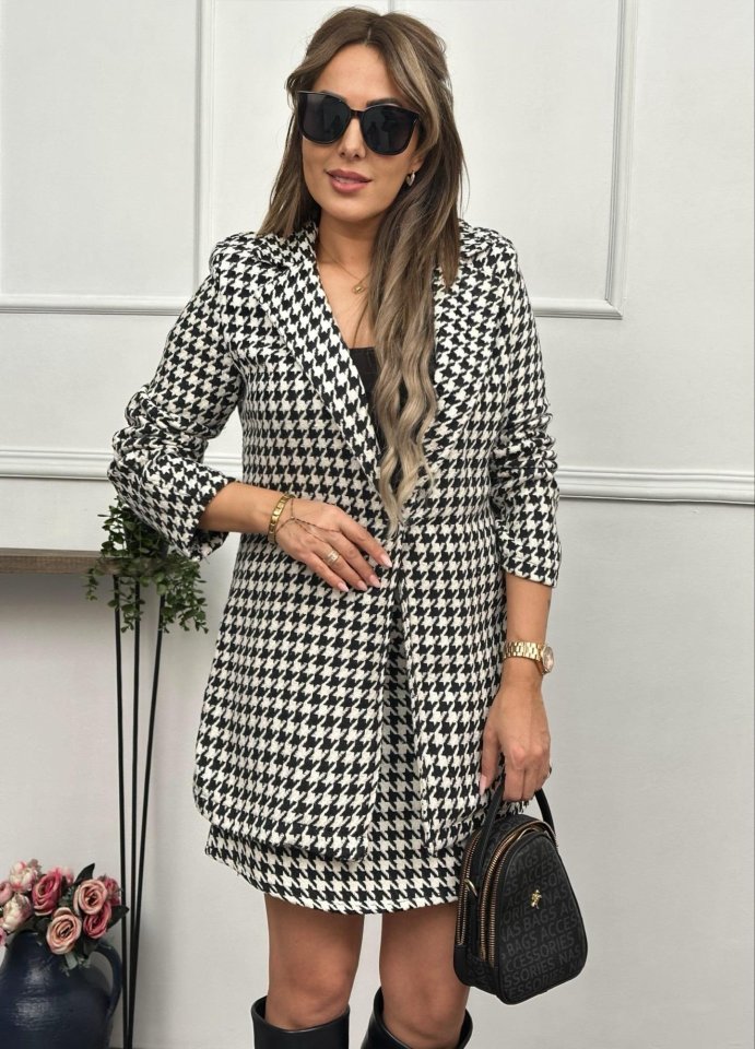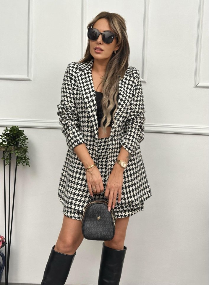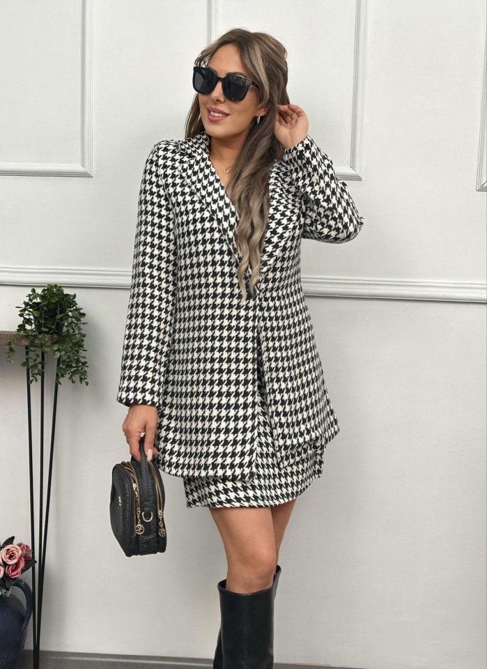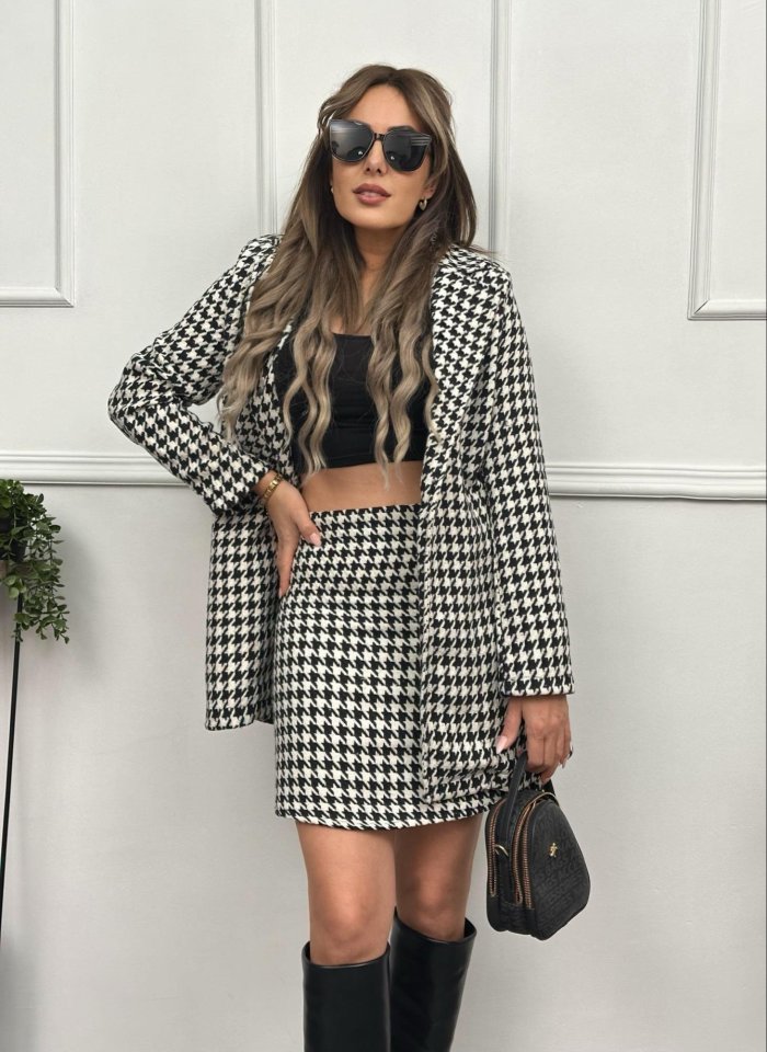 Kadın Kazayağı Desen Vatka Detay Kaban Ve Yüksek Bel Etek Ikili Takım