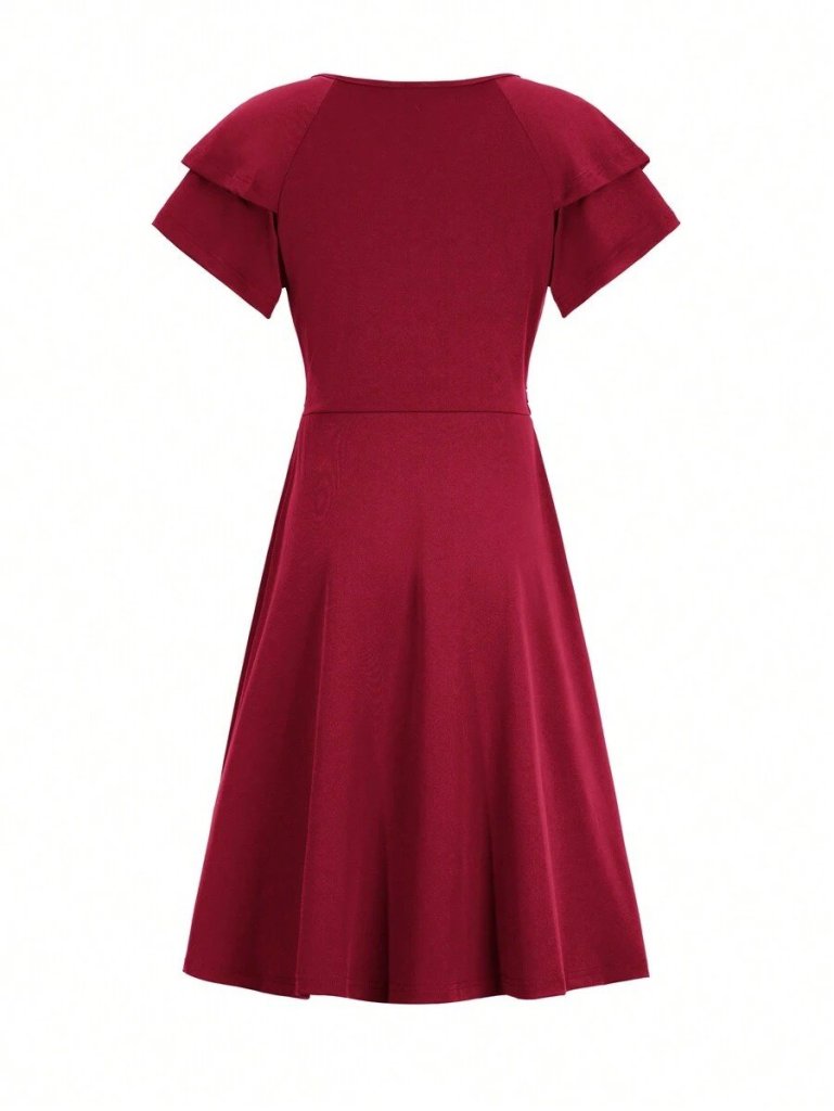 Kadın Kısa Fırfır Kollu Kruvaze Yakalı Kiloş Janjan Krep Elbise