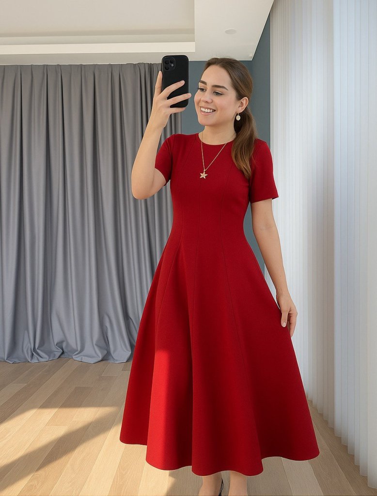 Kadın Kısa Kollu Bisiklet Yaka Maksi Boy Ithal Krep Elbise