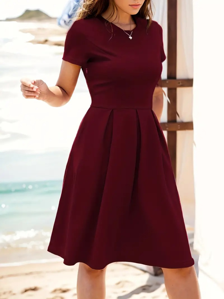 Kadın Kısa Kollu Bisiklet Yaka önden Pile Detaylı Janjan Krep Elbise