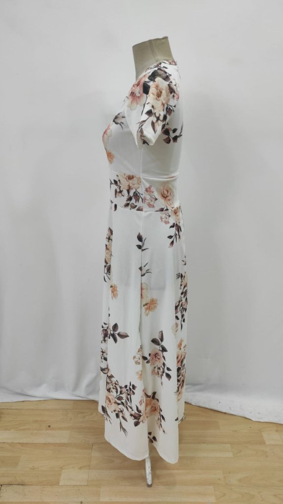 Kadın Kısa Kollu Bisiklet Yaka Puantiyeli Maksi örme Krep Elbise