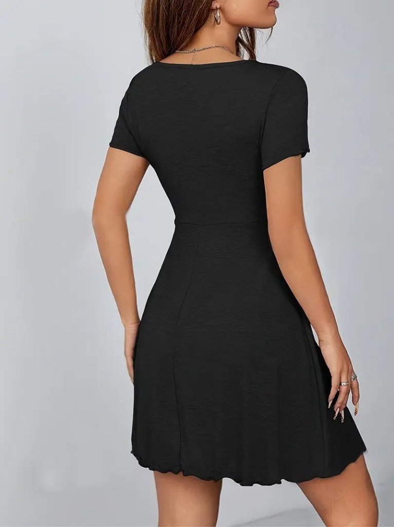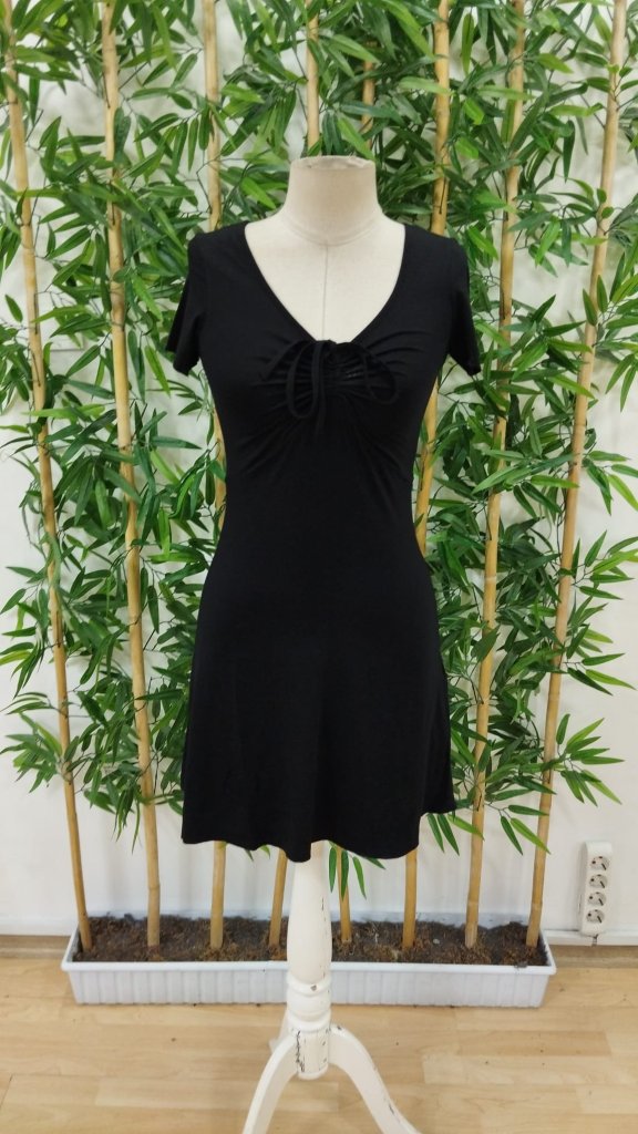 Kadın Kısa Kollu Derin Büzgülü V Yakalı Viskon Elbise