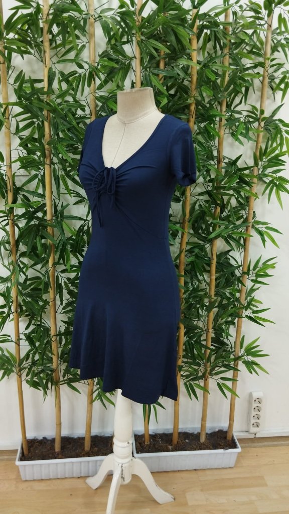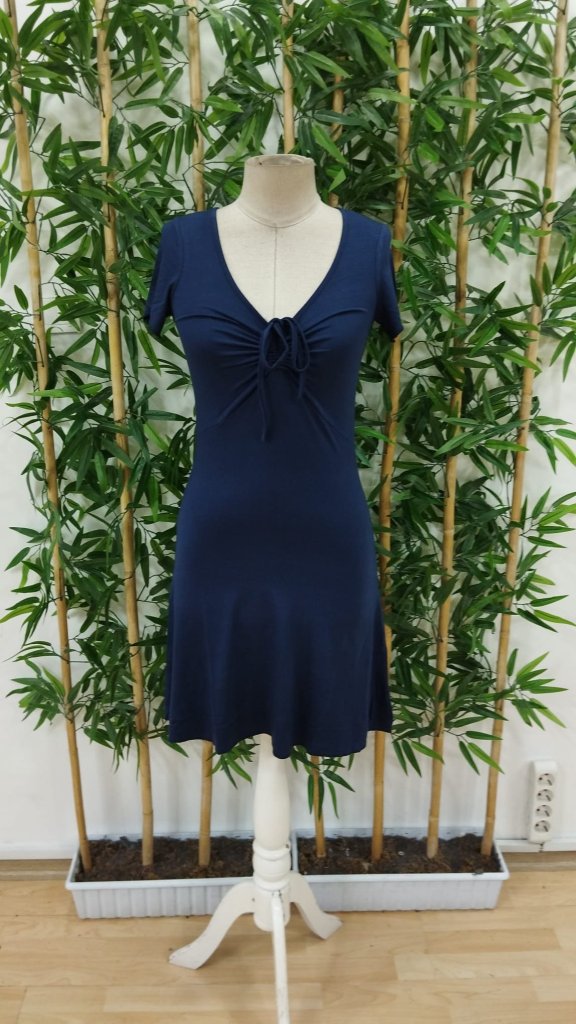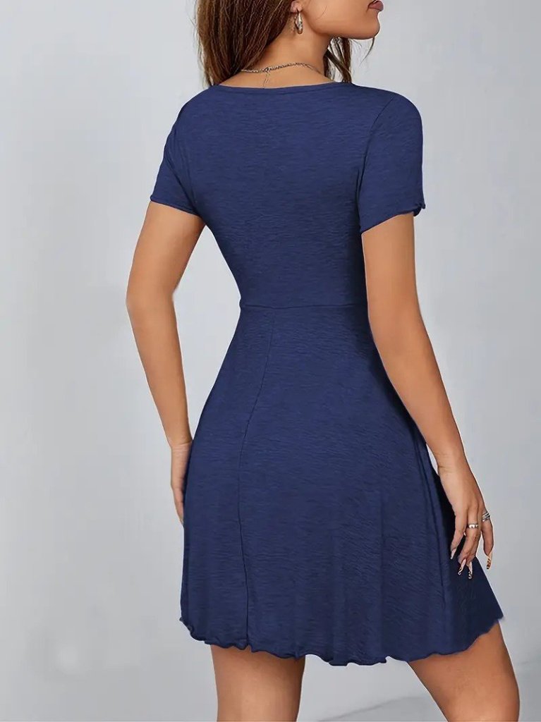 Kadın Kısa Kollu Derin Büzgülü V Yakalı Viskon Elbise