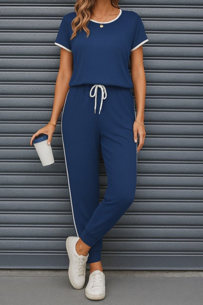 Kadın Kısa Kollu Kayık Yaka Viskon Iki Iplik Bluz Ve Bağcıklı Pantolon Ikili Takım