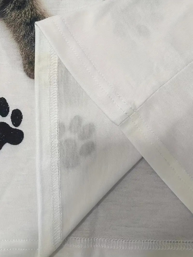 Kadın Kısa Kollu Kedi Ve Pati Baskılı Süprem T-shirt