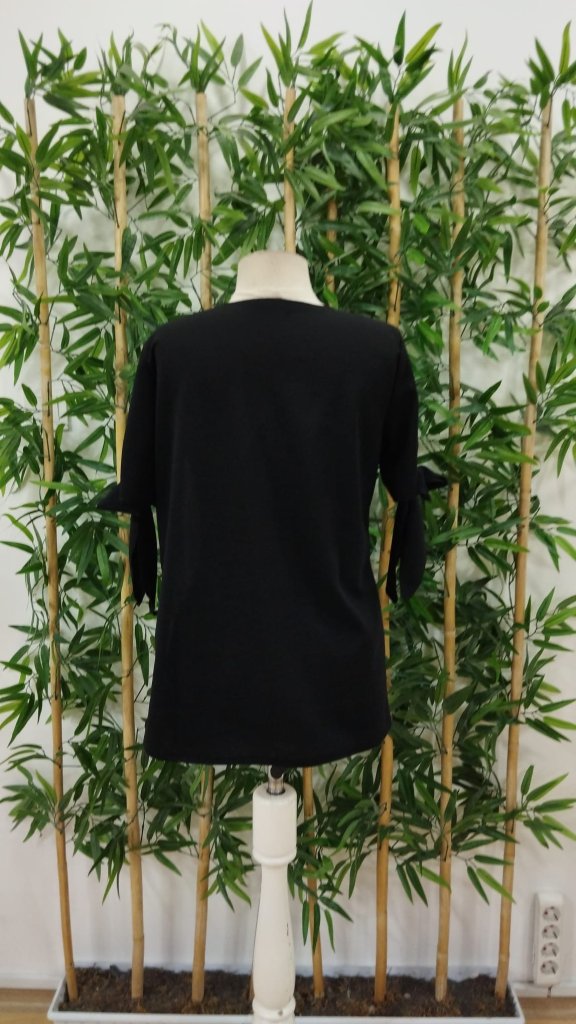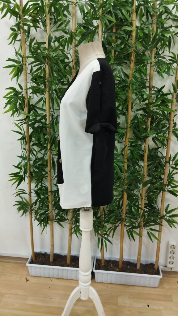 Kadın Kısa Kollu Kollardan Bağlamalı önden Asimetrik Kesim çift Renk Detaylı Düğmeli Ithal Krep Bluz