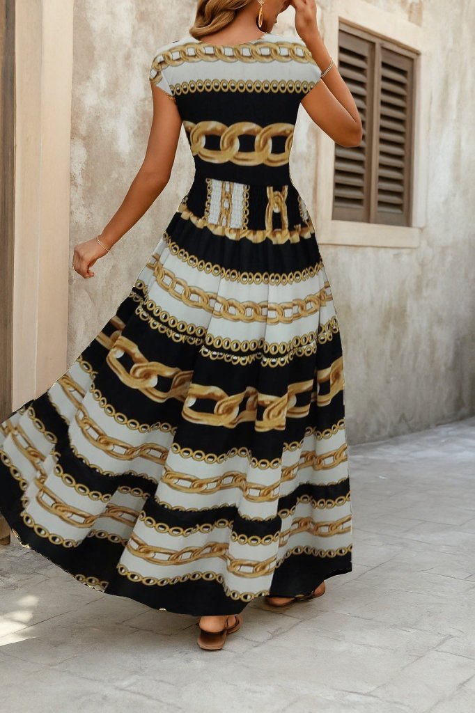 Kadın Kısa Kollu Kruvaze Yaka Beli Lastikli Süprem Maksi Boy Elbise