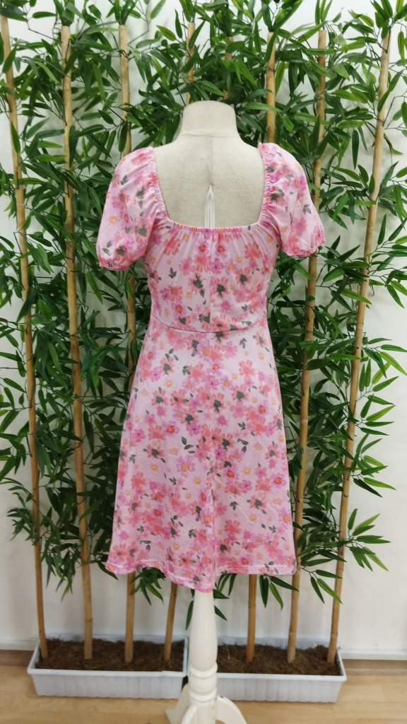 Kadın Kısa Kollu Mini çiçek Baskılı Bağcık Detay Süprem Midi Boy Elbise