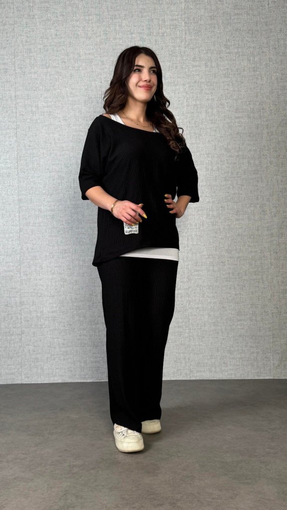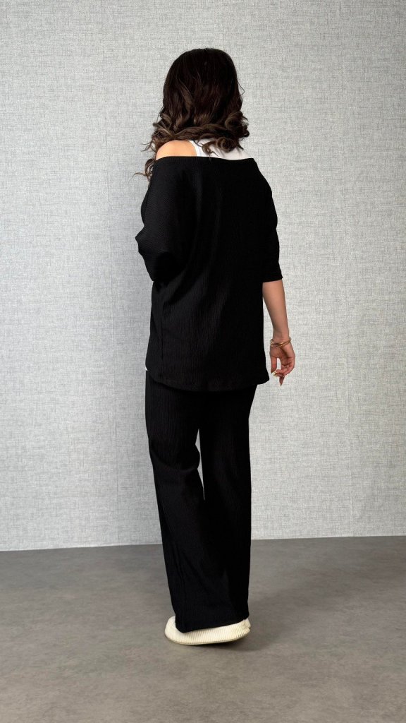Kadın Kısa Kollu Omuzlardan Açık Yarasa Kollu Bürümcük Bluz Ve Pantolon Ve Viskon Atlet