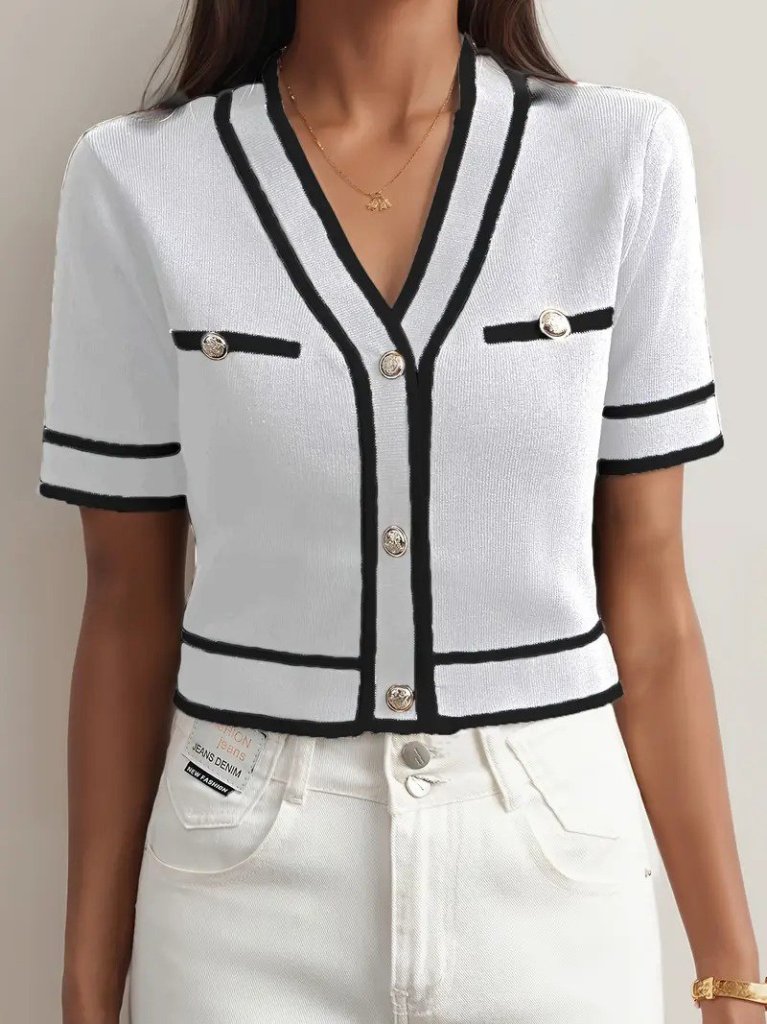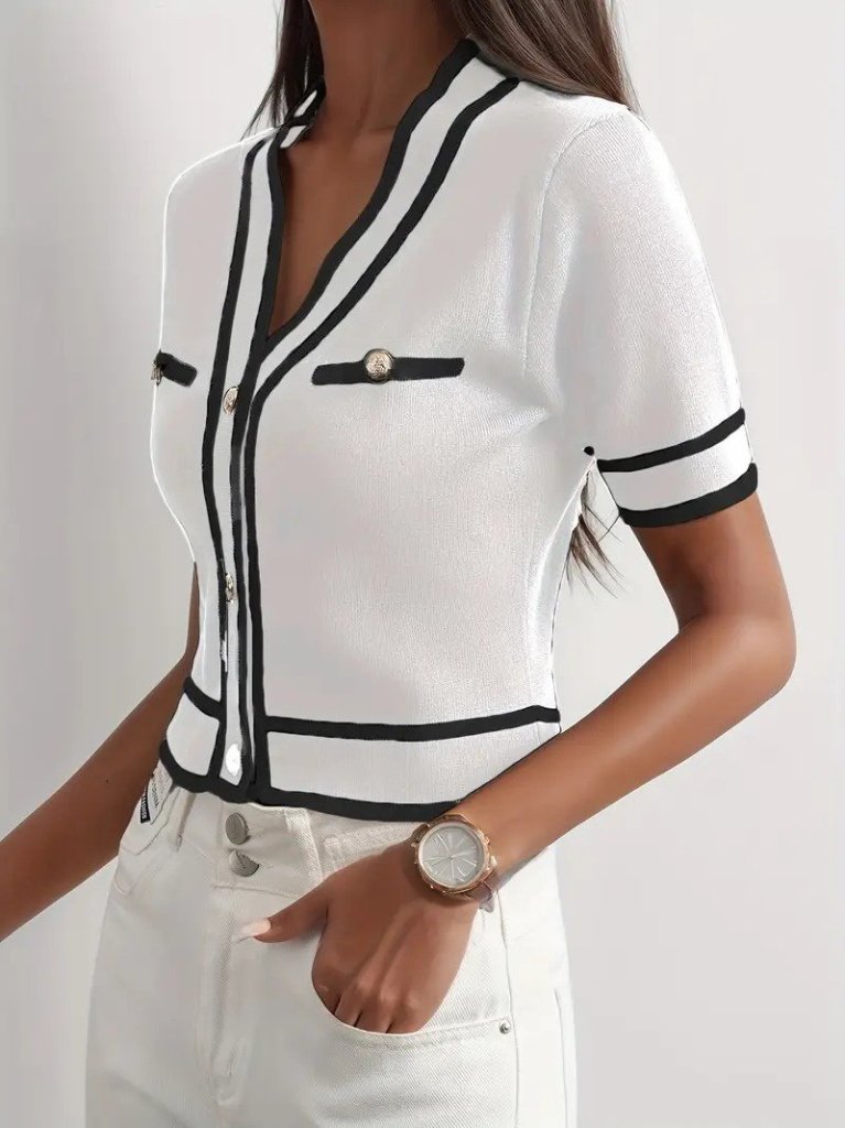 Kadın Kısa Kollu önden Düğmeli Triko Bluz