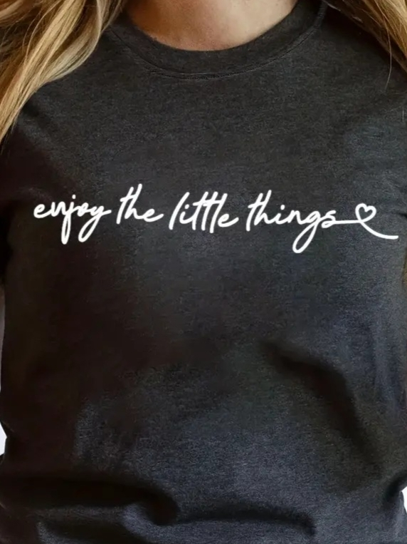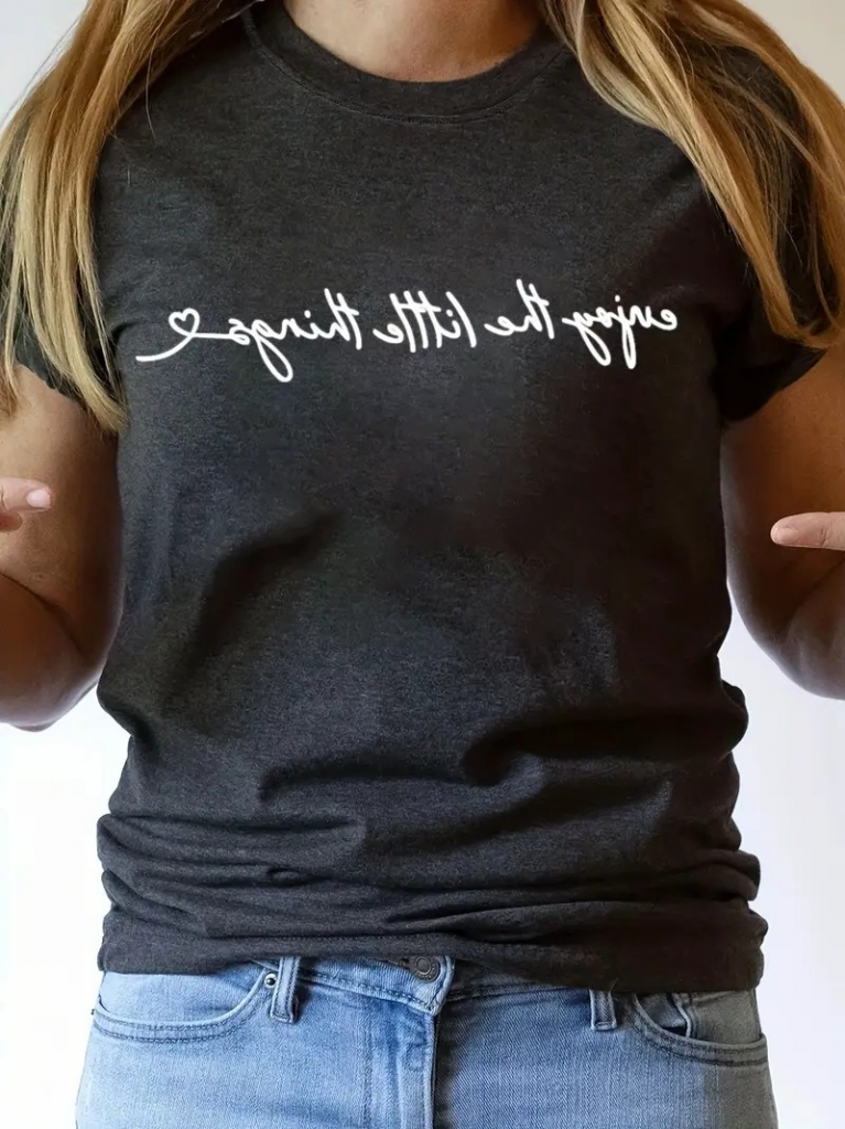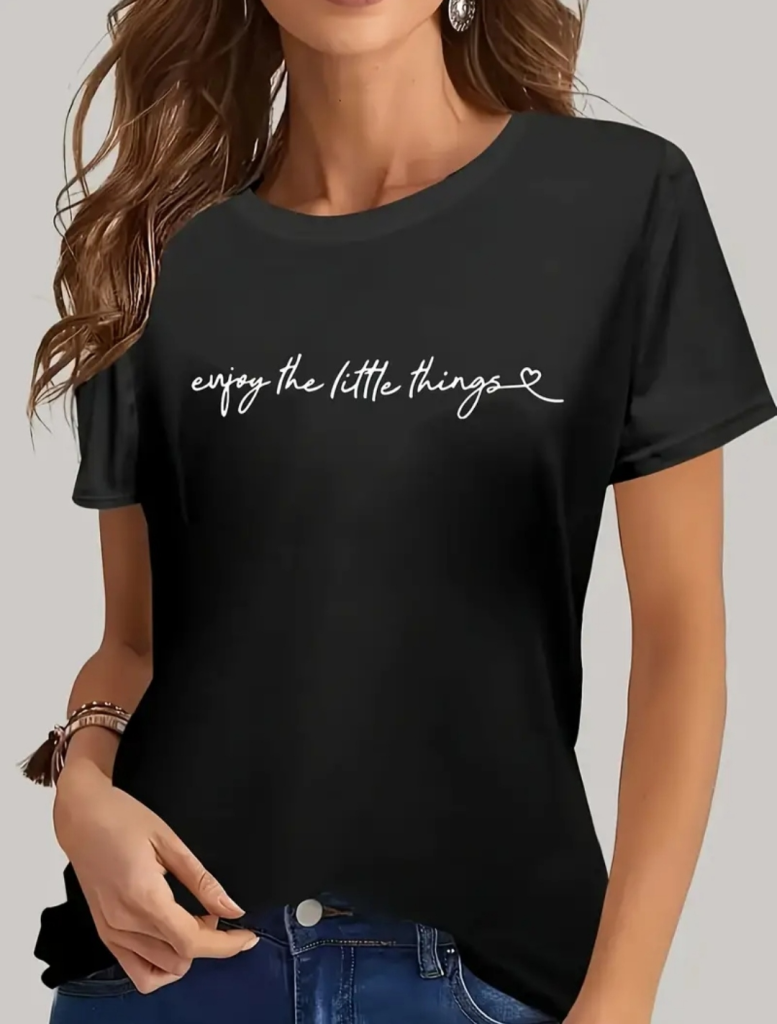 Kadın Kısa Kollu önü Yazı Baskılı Basic Süprem Bluz