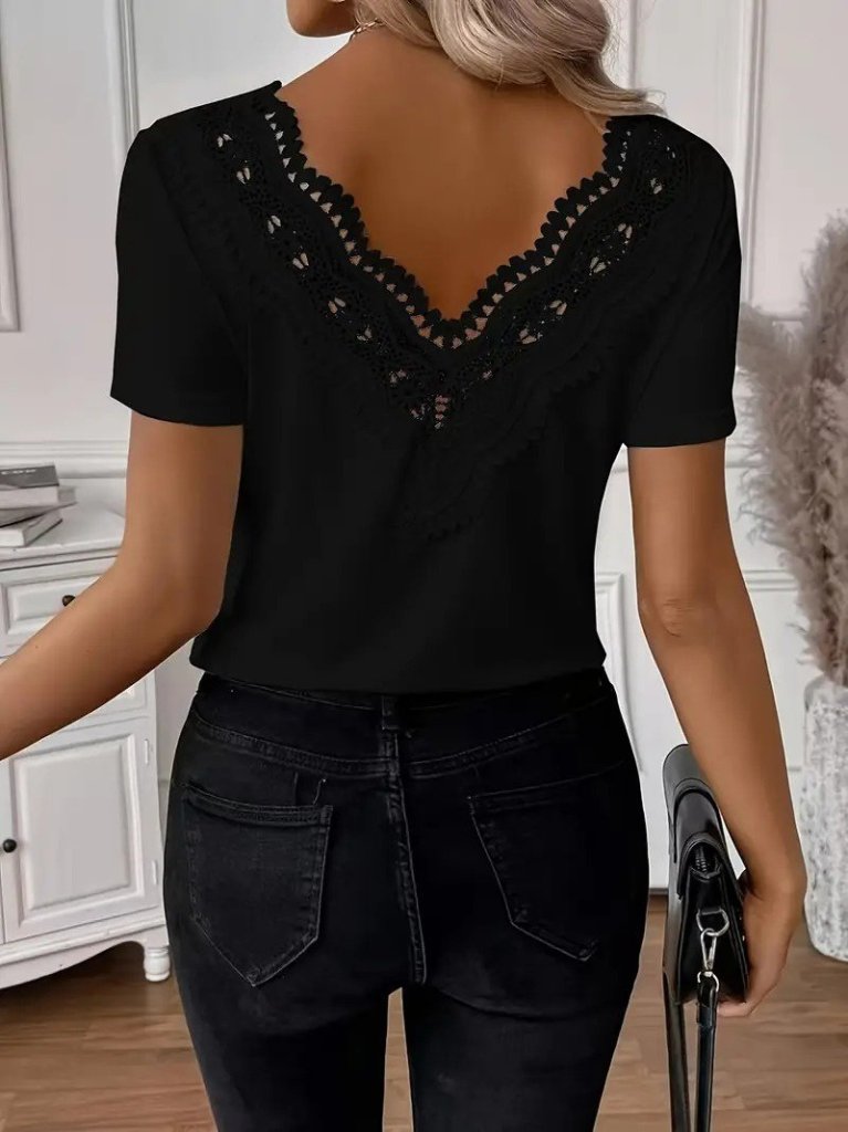 Kadın Kısa Kollu V Yakalı Arkası Dantelli Viskon Bluz