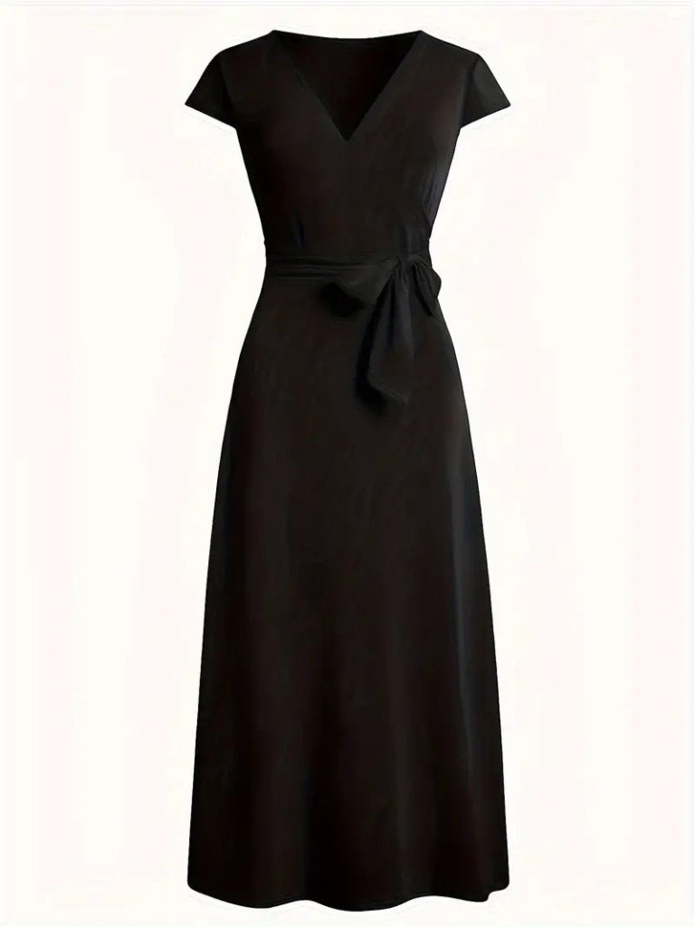 Anasayfa Kadın Kadın Kısa Kollu V Yakalı Belden Kuşaklı Maksi Boy Viskon Elbise