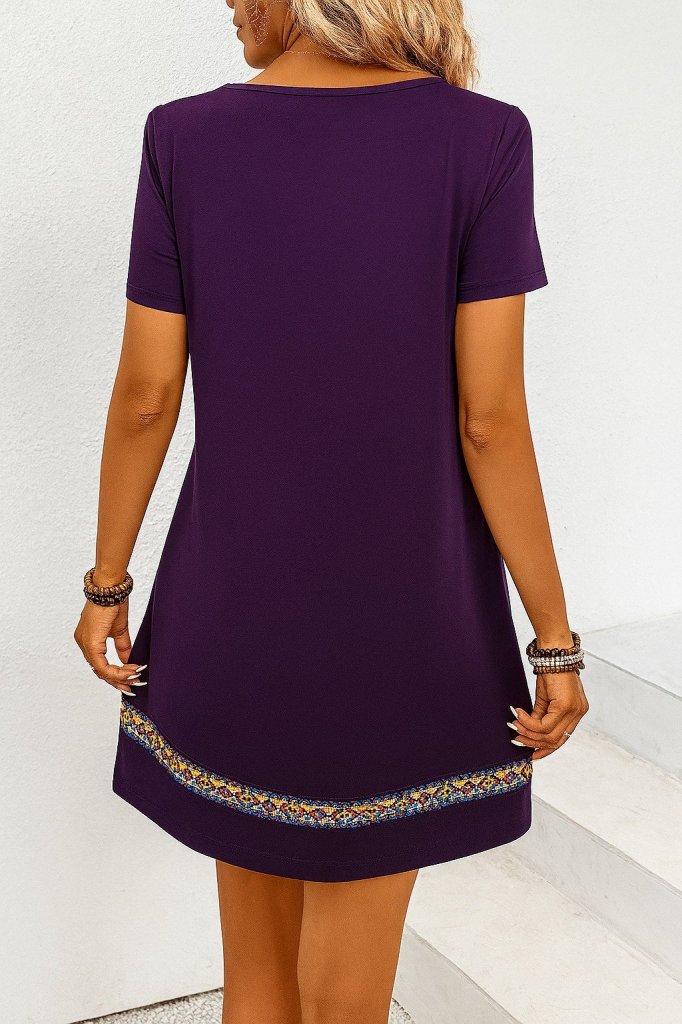 Kadın Kısa Kollu V Yakalı Etnik Desen şerit Detaylı Viskon Elbise