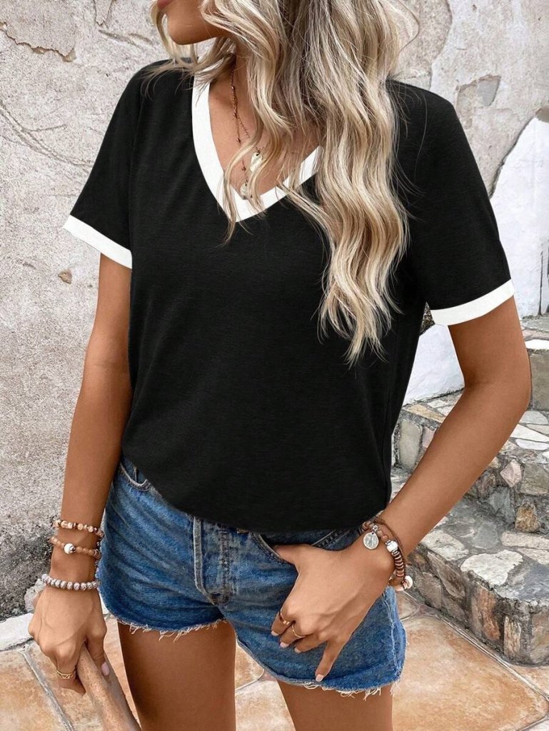 Kadın Kısa Kollu V Yakalı Viskon Bluz