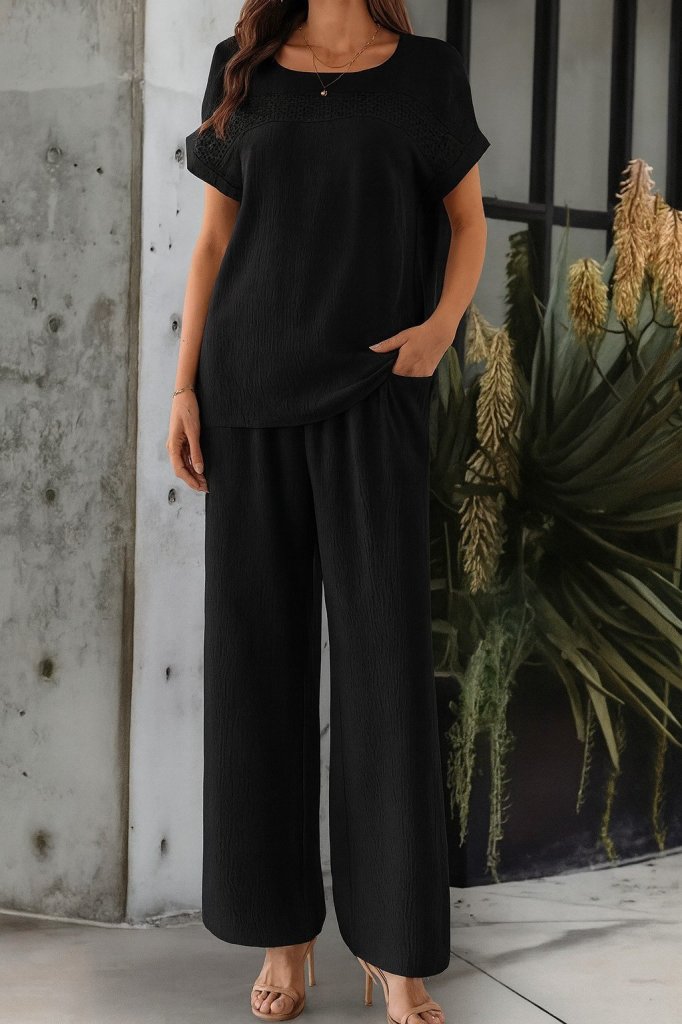 Kadın Kısa Kollu Yakası Açık Aerobin Bluz Ve Pantolon Ikili Takım