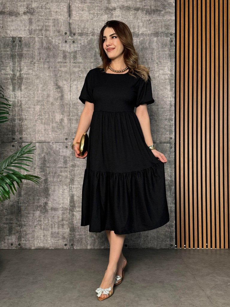 Kadın Kısa Kollu Yakası Açık Katlı Bürümcük Balon Elbise