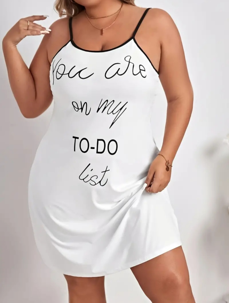 Kadın Kolsuz Askılı Sırt çapraz Detay To Do List Baskı Süprem Gecelik Elbise