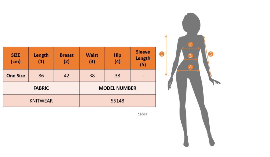 Modelin Ölçüleri: Boy:165, Kg:55, Göğüs:90, Bel:72, Kalça: 100