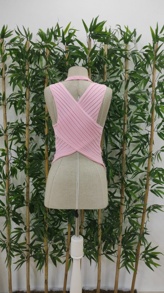 Kadın Kolsuz Sırt çapraz Detay Triko Bluz