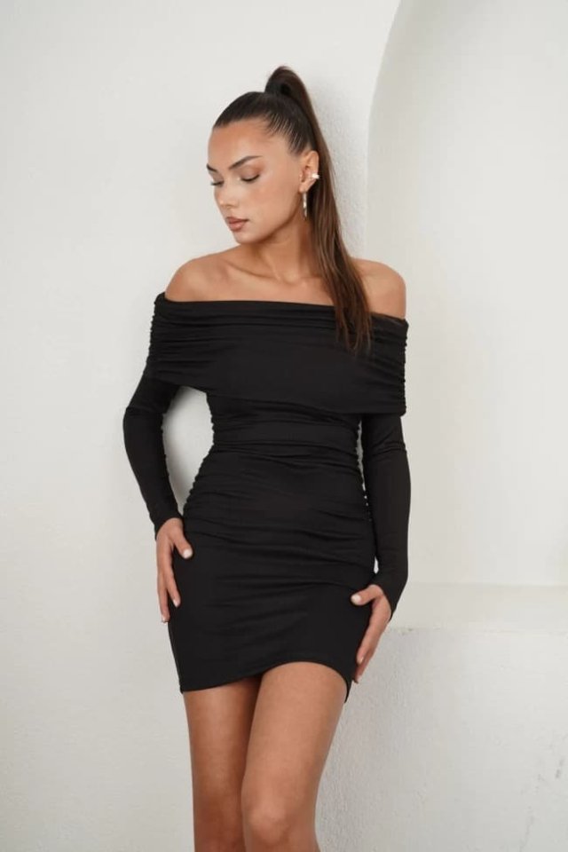 Kadın Madonna Mendil Yaka Fırsat ürün Büzgülü Mini Elbise
