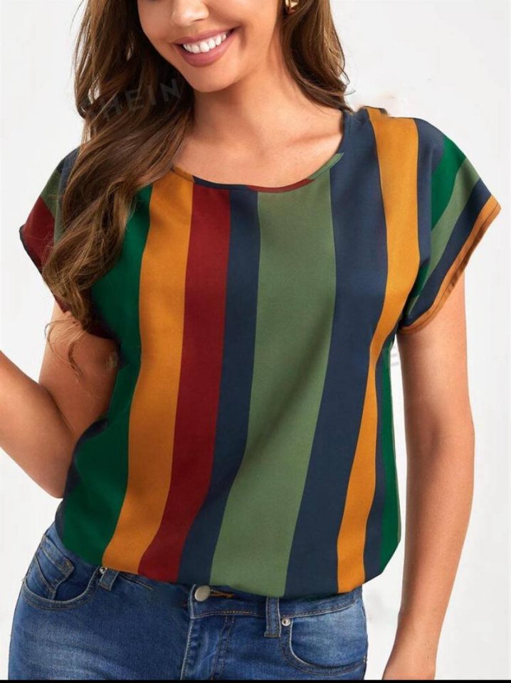 Kadın Mikro Kumaş çizgili Desen Bluz