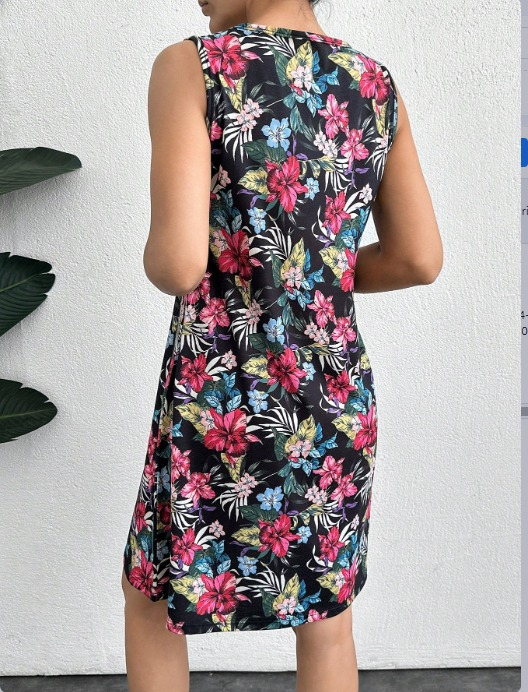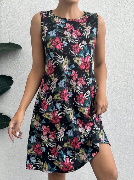 Kadın Renkli çiçek Baskılı Süprem Elbise