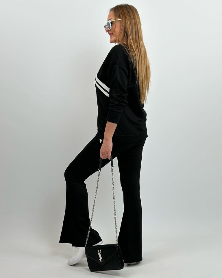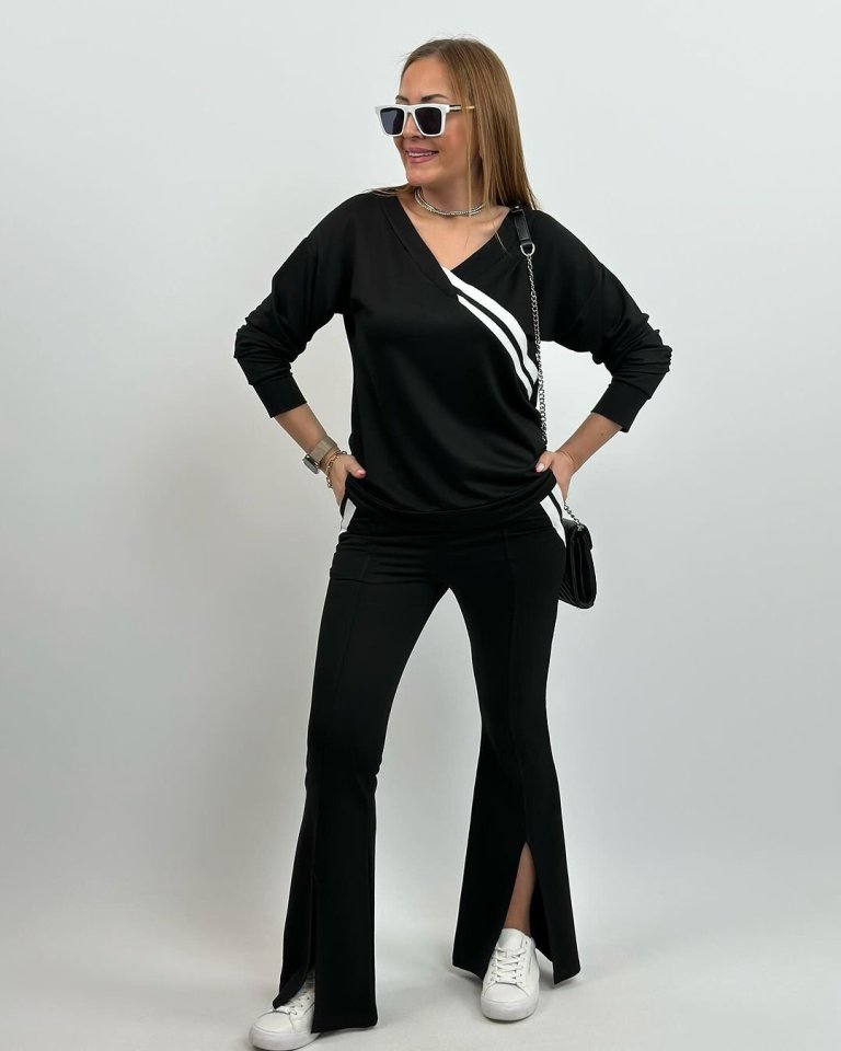 Kadın Ribana Detay Bluz Ve Ispanyol Paça Yırtmaçlı Pantolon Ikili Takım