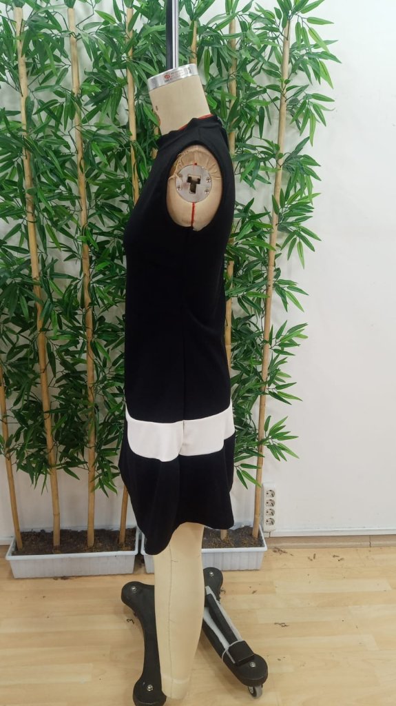 Kadın Sıfır Kol Yarı Balıkçı Yaka şerit Detaylı Ithal Krep Elbise