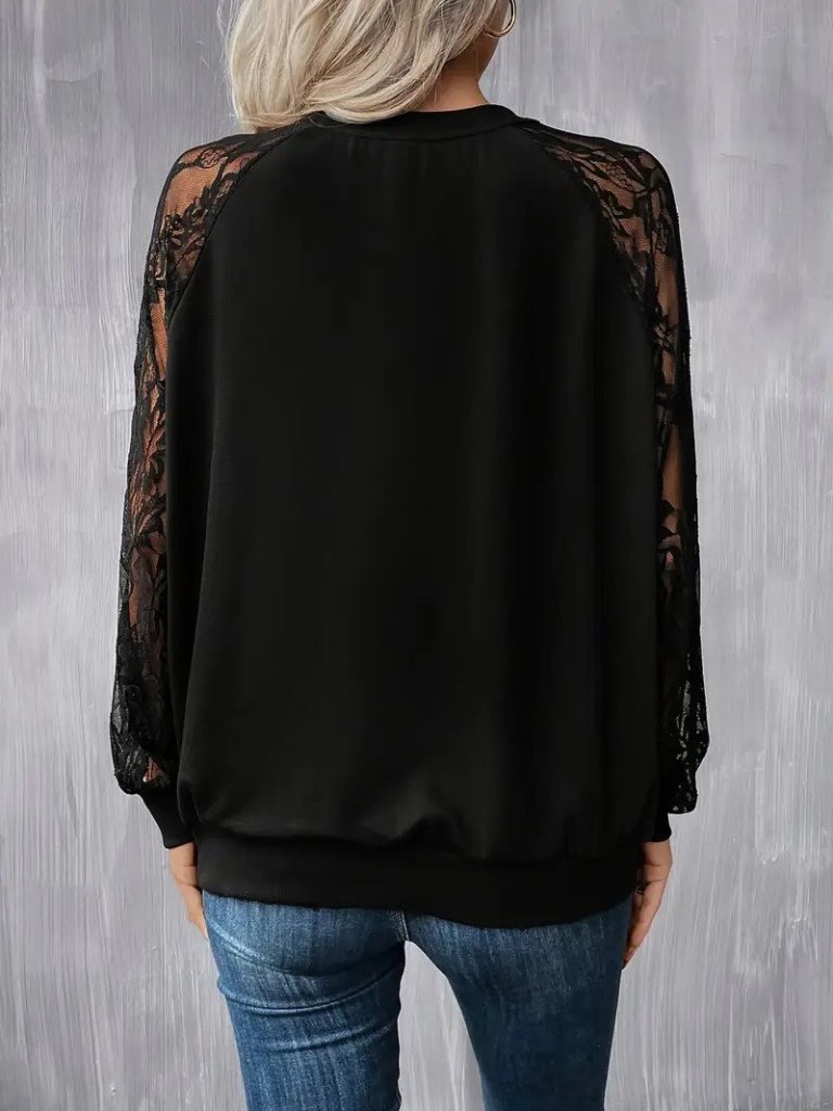 Kadın Uzun Dantel Kollu Bisiklet Yaka Viskon Bluz
