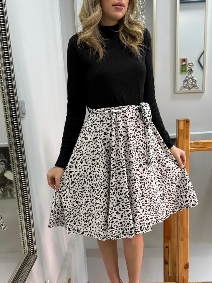 Kadın Uzun Kollu Balıkçı Yaka Belden Bağlamalı üst Kaşkorse Eteği Dalgıç Kısa Elbise