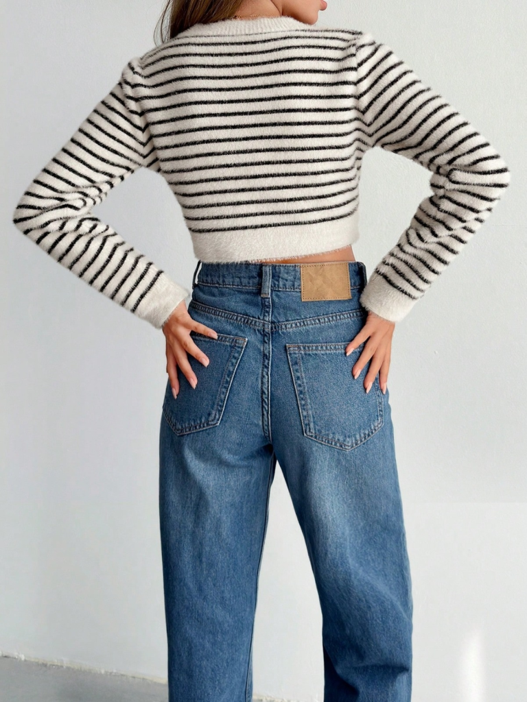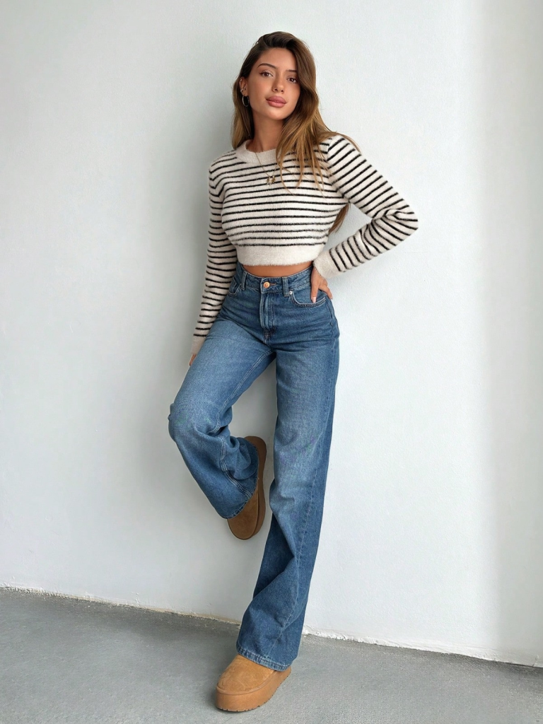 Kadın Uzun Kollu Balıkçı Yaka Crop Triko Bluz