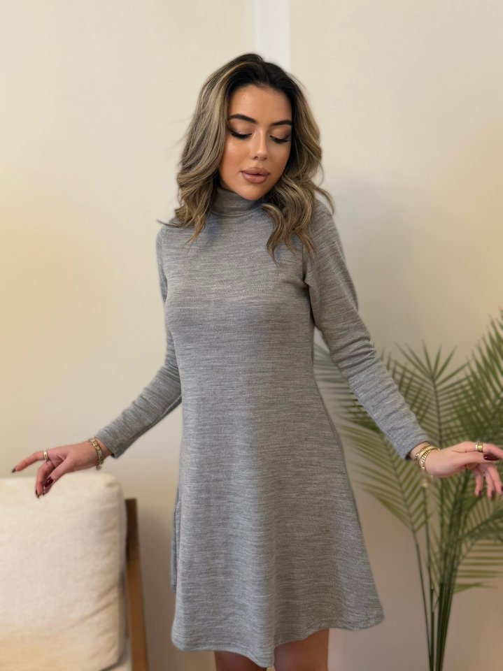 Kadın Uzun Kollu Balıkçı Yaka Salaş Kusa Akrilik Elbise