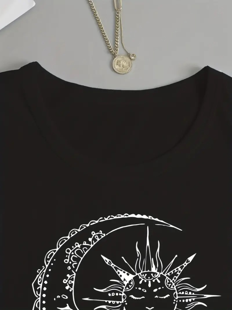 Kadın Uzun Kollu Bisiklet Yaka Ay Baskılı Viskon Bluz
