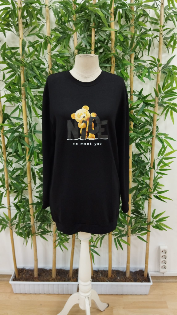 Kadın Uzun Kollu Bisiklet Yaka Ayı Desenli Viskon Iki Iplik Elbise