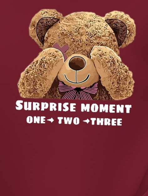 Kadın Uzun Kollu Bisiklet Yaka Ayıcık Desenli Viskon Iki Iplik Bluz