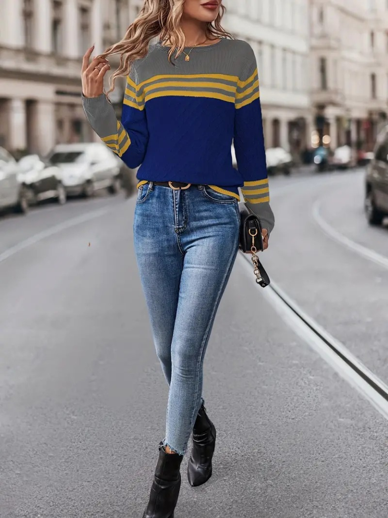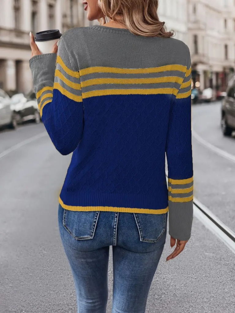 Kadın Uzun Kollu Bisiklet Yaka çok Renkli Triko Bluz