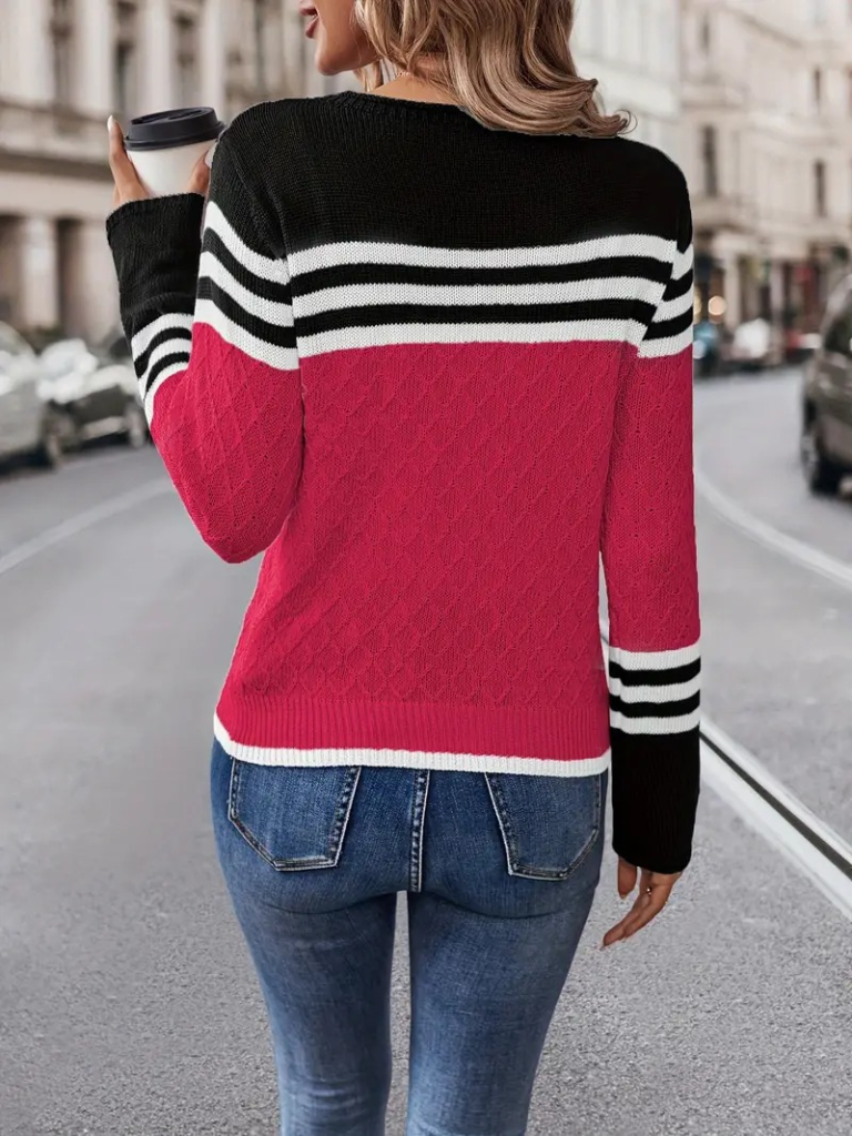 Kadın Uzun Kollu Bisiklet Yaka çok Renkli Triko Bluz