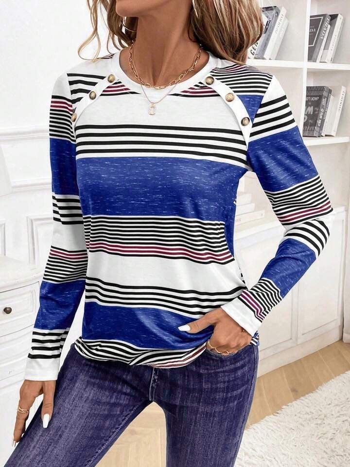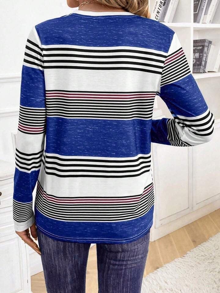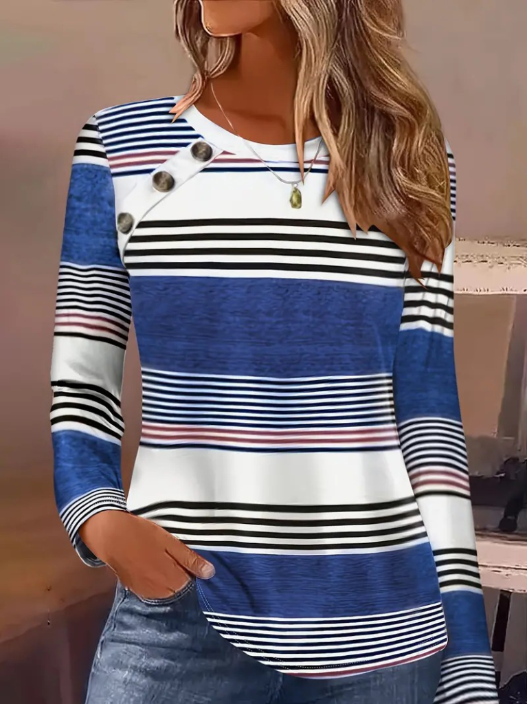Kadın Uzun Kollu Bisiklet Yaka Düğme Detaylı Desenli Süprem Bluz