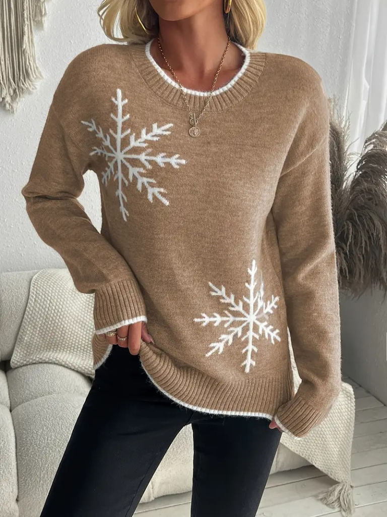 Kadın Uzun Kollu Bisiklet Yaka Kar Tane Desenli Triko Bluz