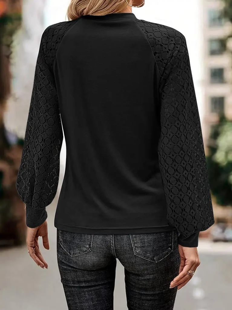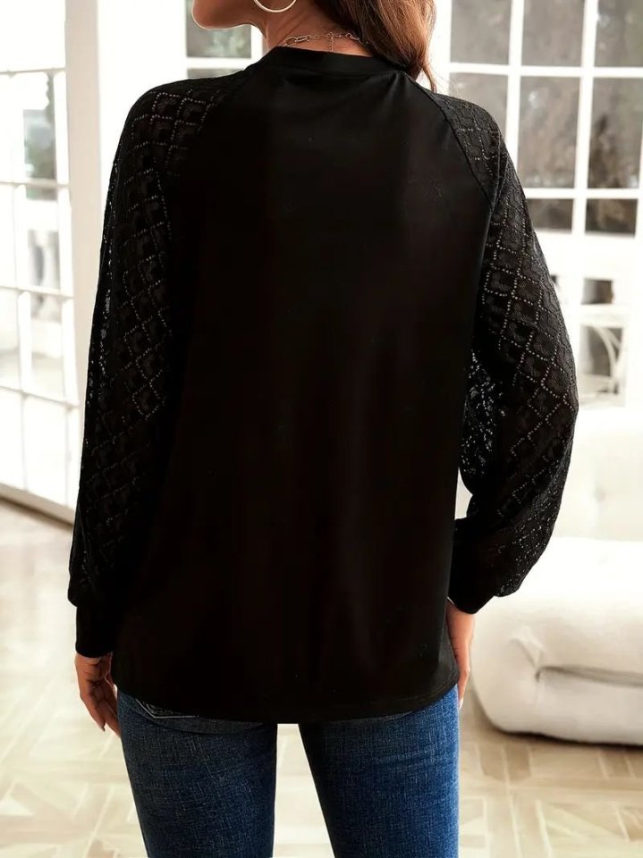 Kadın Uzun Kollu Bisiklet Yaka Kollar Dantel önü çizgi Detaylı Viskon Bluz