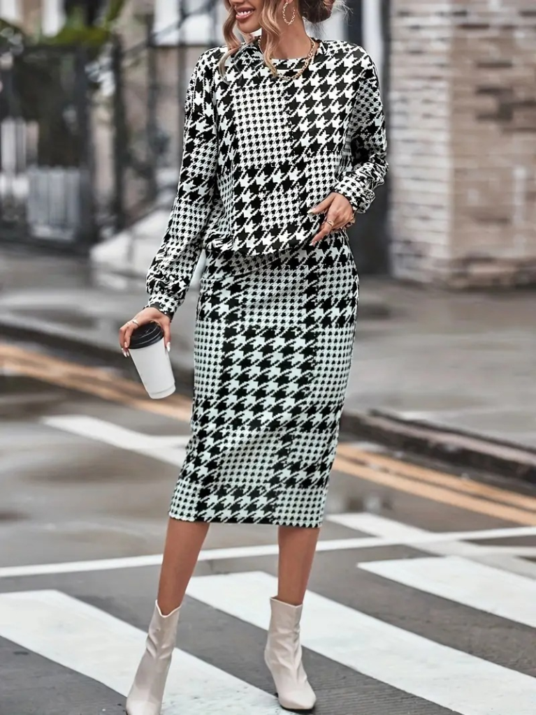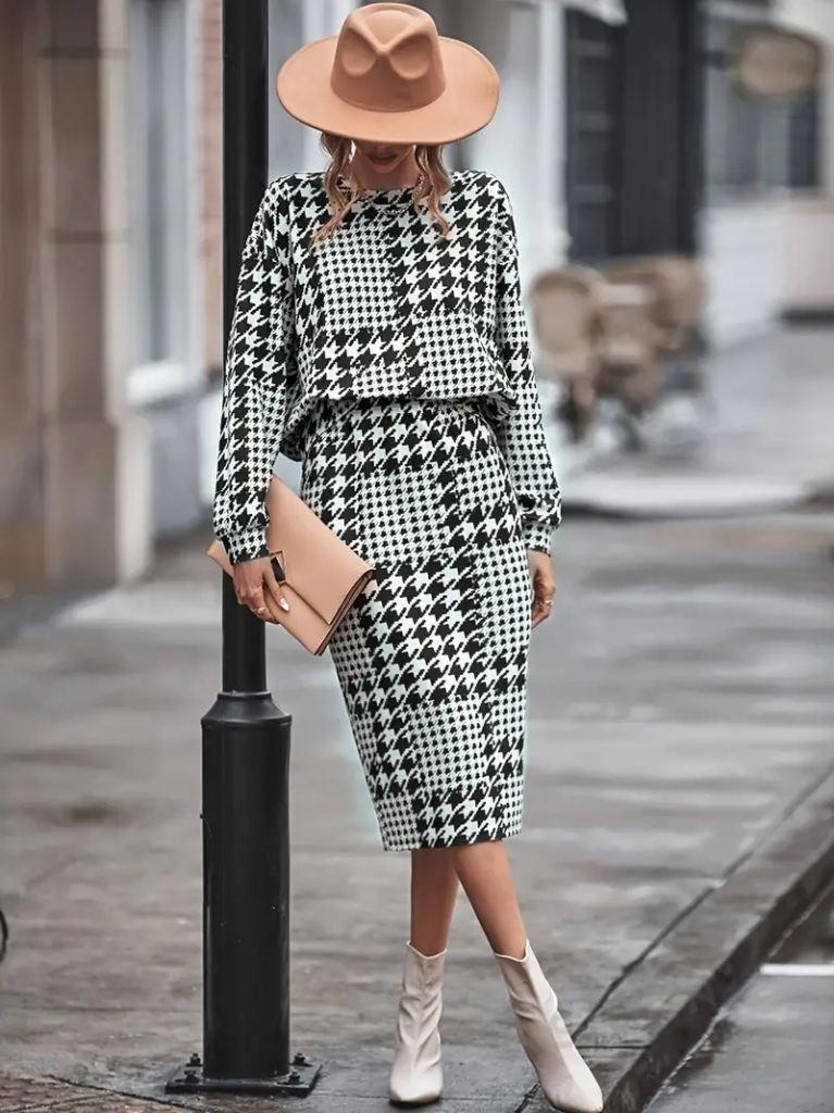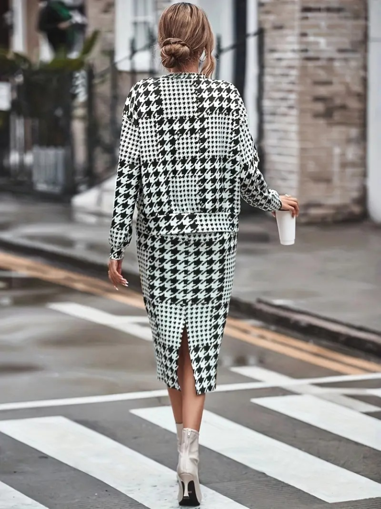 Kadın Uzun Kollu Bisiklet Yaka şardonlu Dalgıç Bluz Ve Yırtmaçlı Midi Etek Takım