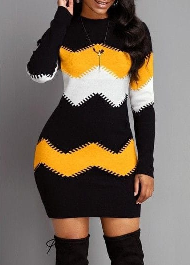 Kadın Uzun Kollu Bisiklet Yaka Triko Elbise