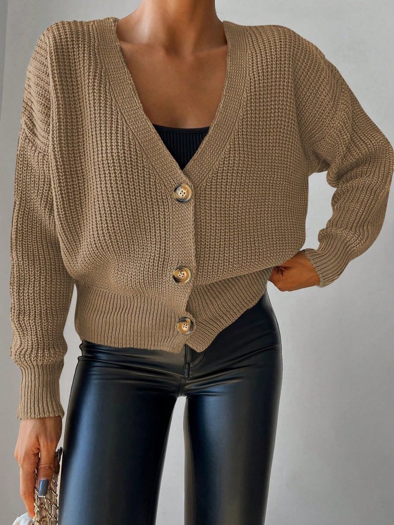 Kadın Uzun Kollu Düğme Detay Triko Bluz