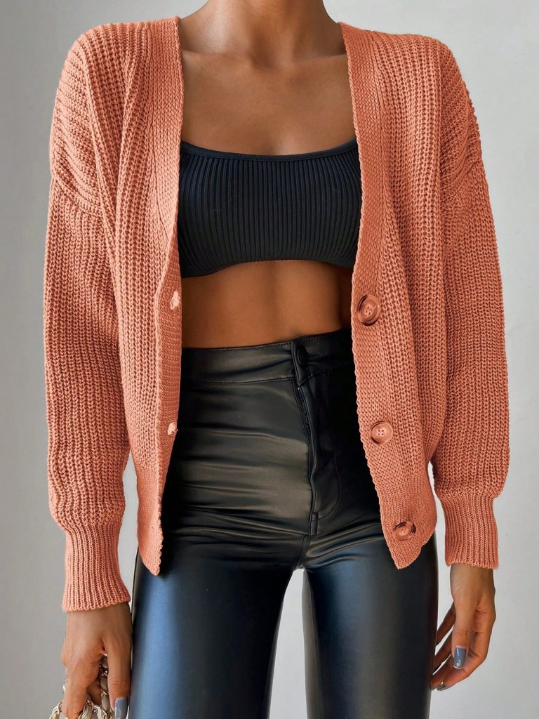 Kadın Uzun Kollu Düğme Detay Triko Bluz