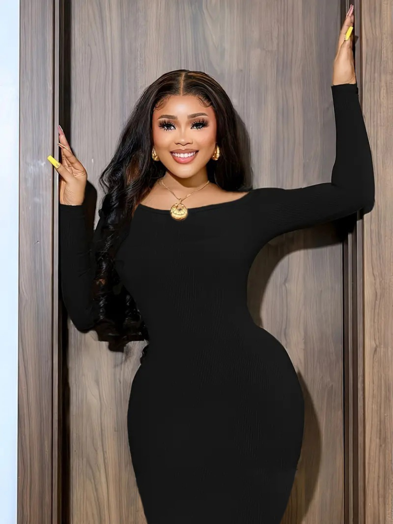 Kadın Uzun Kollu Hafif Kayık Yaka Sırt Dekoltelielbise