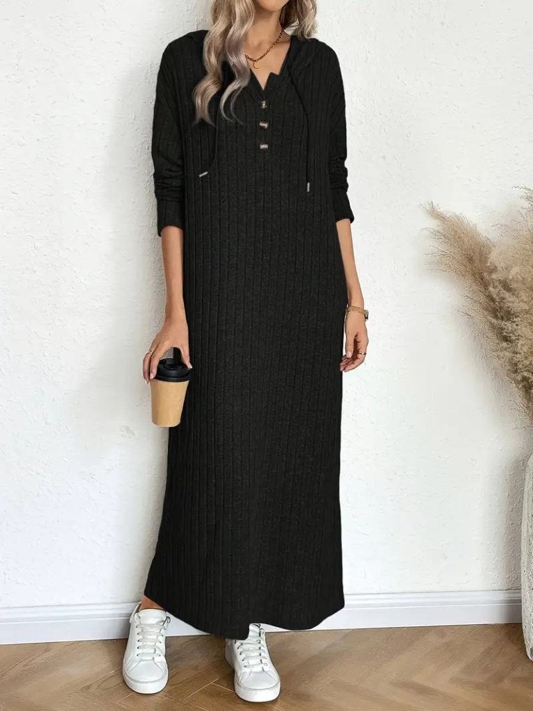 Kadın Uzun Kollu Kapşonlu Bağcıklı şardonlu Kaşkorse Uzun Elbise