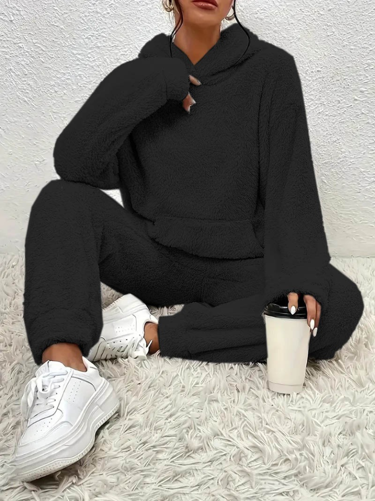 Kadın Uzun Kollu Kapşonlu önden Cepli Peluş Alt Ve üst Ikili Takım