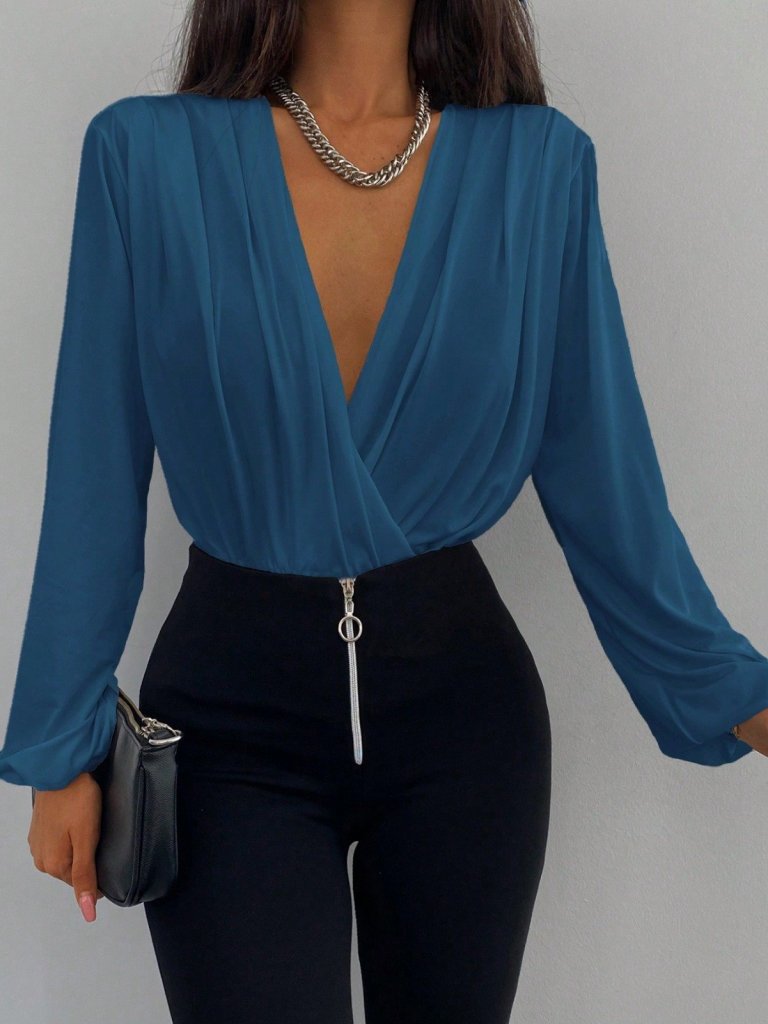 Kadın Uzun Kollu Kruvaze Yaka Sandy Bluz
